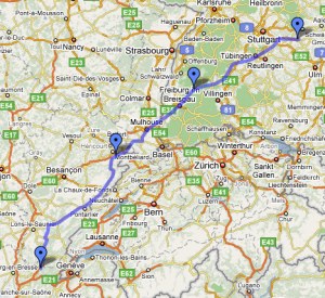 Unter großer Pressebeteiligung startete heute morgen die Gruppe am Platz de Oyonnax in Eislingen. Den Startschuß gab Karin Schuster als Vorsitzende des Partnerschaftskomitees. Die geplante Radstrecke führt über die Etappenorte Elzach, Audincourt nach Oyonnax.