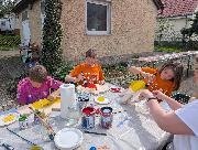 Kinder gestalten farbenfrohe Gartenstecker für das Dorfhäusle
