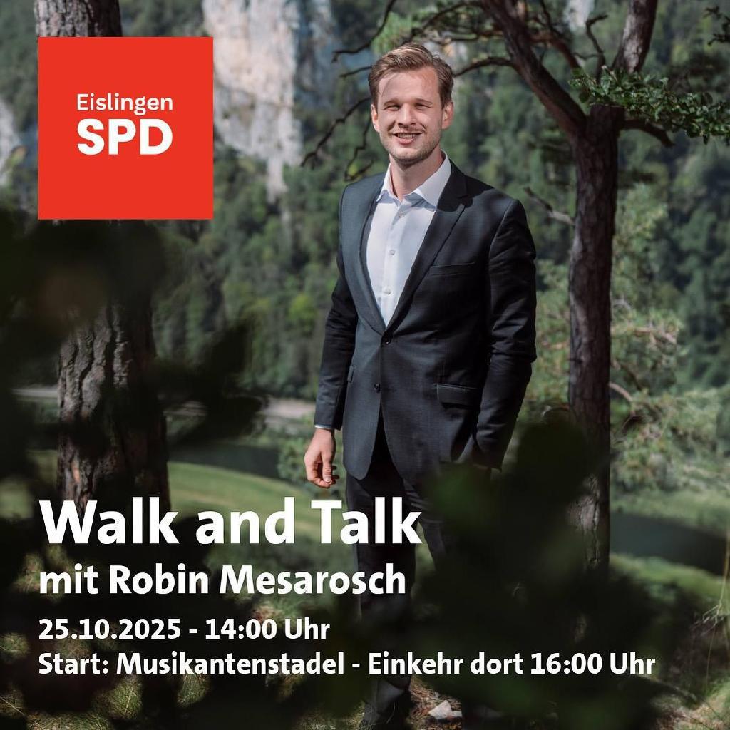 „WALK and TALK“ mit Robin Mesarosch in Eislingen am Samstag, 25.Oktober 2025 Treffpunkt ist um 14.00 Uhr am Musikantenstadl 20.10.2025 - PM SPD