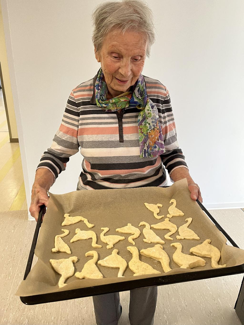 Am Martinstag wurde es im Altenzentrum St. Elisabeth besonders stimmungsvoll. Gemeinsam mit unseren Bewohnerinnen und Bewohnern haben wir den Tag zu Ehren des heiligen Martin gefeiert. Schon am Vormittag duftete es im ganzen Haus nach frisch gebackenem Gebäck. Mit viel Eifer und Freude formten unsere Bewohner kleine Martinsgänse aus Quark-Öl-Teig. Eine schöne Tradition, die alle an früheren Zeiten erinnerte. | |||