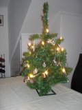 und echten Kerzen gegen das Gesamtkunstwerk Recyclingbaum