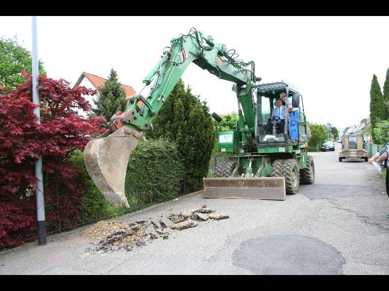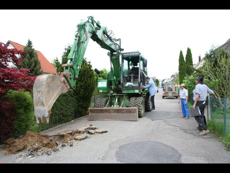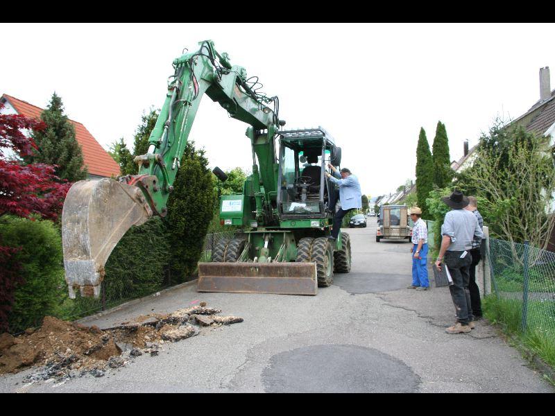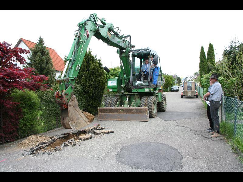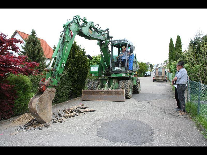 Am vergangenen Montag war es so weit: Baggerfahrer Willibald alias Bürgermeister Günther Frank gab grünen Bagger für eine längst überfällige Maßnahme, die Sanierung der Straßen in der Karl-Liebknecht-Siedlung im Südosten unserer Stadt. Für € 150.000 soll nach Einlegung von neuen Gas- und Wasserleitungen die Oberfläche der Straßen neu versiegelt werden, eine längst überfällige Maßnahme. Bauarbeiten an der Brücke waren der Auslöser. Waren doch zu viele Schäden in den Straßen entstanden. Eislingen-online hofft, dass die Maßnahme zügig durchgeführt wird und die Anwohner sich bald über eine schöne Straße freuen können.