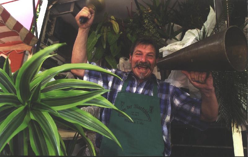 In der Hitze um den Tagessieger (Wettbewerb der MARKTSCHREIER-PROFIS am Samstag, ab 16.00 Uhr/ HAUPTPREIS FÜR DAS PUBLIKUM: EIN WOCHENENDE EURO-DISNEY IN PARIS) der beredten Verkäuferzunft, der von der Gunst des Publikums gekürt wird, kann es dann wohl vorkommen, dass nicht nur flotte Sprüche, sondern auch auch die eine oder andere Salami, Bananen, Orangen oder Blumenstöcke den Luftraum über den Köpfen der Zuschauer kreuzen.