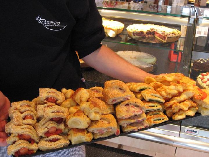 Wer bisher beim Cafe Daminano nur an süßes Backwerk dachte, konnte am Samstag- Nachmittag etwas dazulernen. Mit Hochdruck wurde in der Backstube an Pasticini rustici, der 'salzigen' Variante der Pasticini gearbeitet. Daminano hatte alle Hände voll zu tun um den prestigeträchtigen Auftrag, der Belieferung des VIP-Zeltes beim Gianna Nannini-Konzert in Rechberghausen fristgerecht auszuführen.