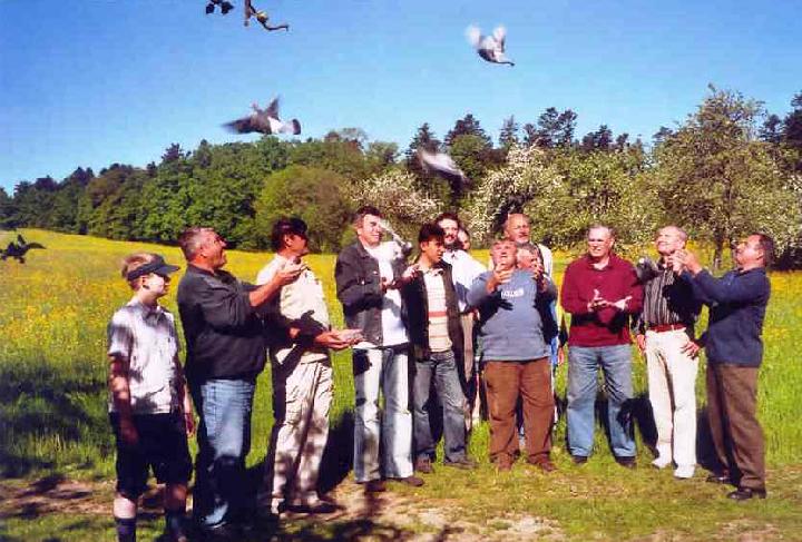 Der Auflass von mitgebrachten Brieftauben in der Zuchtanlage des Vorstandes in Ottenbach sollte den symbolischen Auftakt und eine Gruß an die ungarische Heimat sein, ob die Tauben den Heimweg fanden, wir werden es wohl mal erfahren. Als Willkommensgeschenk wurden 5 Paar ungarischen Taubenrassen mitgebracht, welche schnell ihre neuen Besitzer fanden, gleichwohl hatten die Gäste auch nach Blutauffrischung bestimmter Rassen im Vorfeld angefragt, wie Strasser, Deutsche Modeneser, Eistauben, Kupfergimpel und und , diese Tiere wurde freudig erwartet und so fuhr man weiter nach Ellwangen zu Zuchtfreund Mangold, welcher seltene Maltesertauben abgab.