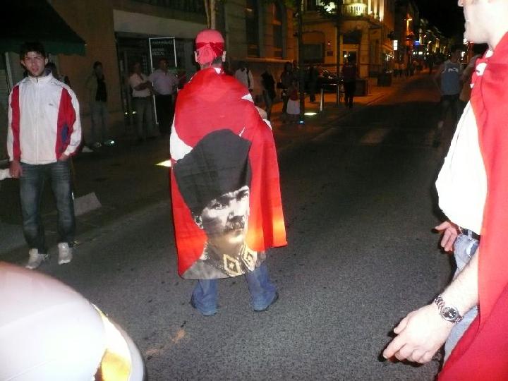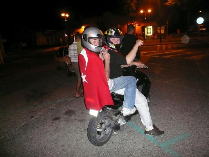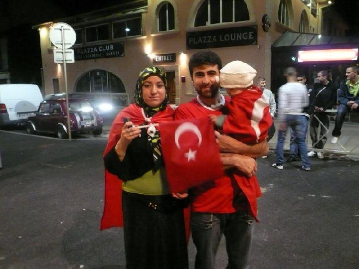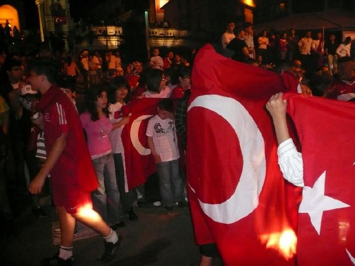 Rotes Fahnenmeer: Auch die Oyonnaxer Türken freuen sich über den Sieg Fans von Aykut Ercetin treffen auf seinen Englischlehrer Peter Ritz 23.6.2008 - Ritz Peter