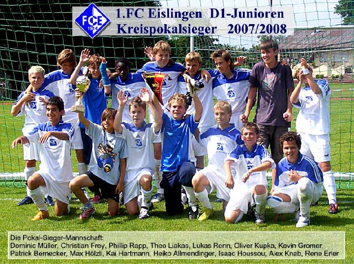 Die Blau-Weißen spielten von Anfang an druckvollen Fußball und führten zur Halbzeit knapp aber hochverdient mit 2:1. Nach einer aufmunternden Halbzeitansprache von Trainer Olli wurde das Spiel zunehmend besser und den Jungs gelang es, an die gute Form der zurückliegenden Punktrunde anzuknüpfen. Das Flügelspiel wurde nun forciert und nach etlichen Chancen das Finale mit einem klaren 6:1 aus Eislinger Sicht gewonnen. Von vier möglichen Erstplatzierungen konnten im Laufe der Saison 07/08 mit dem Sieg in der Qualirunde 07, Hallenkreismeister und nun Kreispokalsieger drei schöne Erfolge errungen werden.