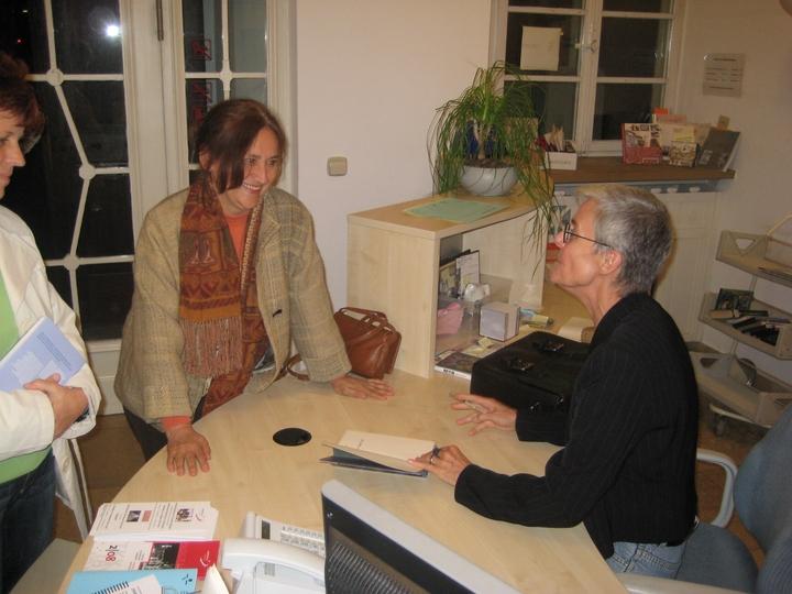So kam es nicht von ungefähr, daß in der Fragerunde ein Gast die Frage nach der chinesischen Übersetzung von Tinas Gedichten stellte. Nach der Begrüßung durch den Verleger Hubert Klöpfer stellte die Eislinger Lyrikerin und Pen-Club-Mitglied Tina Stroheker Auszüge aus dem jetzt erschienen Gedichtband 'Was vor Augen liegt' vor. Dieser Band, erschienen beim Verlag Klöpfer + Meyer, Tübingen, erscheint zum sechzigsten Geburtstag von Tina Stroheker und enthält neu zusammen gestellte Gedichte, die einen Dialog mit früheren Veröffentlichungen führen.