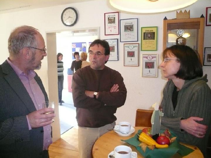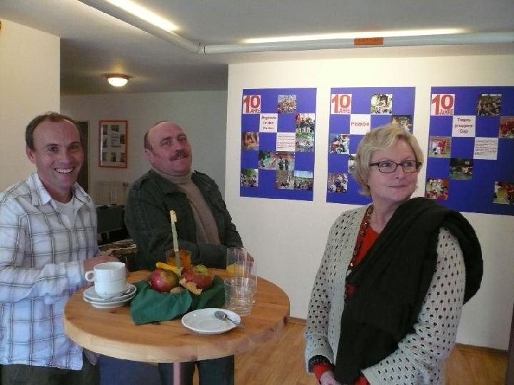Es war wieder der harte Kern der ersten Stunde, der sich am vergangenen Freitag im der Staufeneckstraße 68 zum 10-Jährigen traf. Grußworte von Bürgermeister Günther Frank und den Vertretern der Vinzentiuspflege, die die Tagesgruppe betreuen waren schon verklungen als der Korrespondent von eislingen-online.de eintraf. Dennoch gab es noch gute Gespräche bei Kaffee und Kuchen. Tenor: In Eislingen geschieht viel Gutes im Kinder- und Jugendbereich. In 68 werden Kinder und Jugendliche individuell betreut unter Einbeziehung der Eltern, soziales Lernen eingeübt, die schulische Entwicklung begleitet, das Gemeinwesen erkundet, ...alles mit viel Spaß verknüpft. Klaus Hagmann, Hans-Peter Wimmer und natürlich der 'Leuchtturm vor Ort', Robert Kopp, sind mit der Arbeit ebenso wie der Sozialamtsleiter Dieter Kauderer und der Jugendamtsleiter des Landkreises, Lothar Hilger, zufrieden.