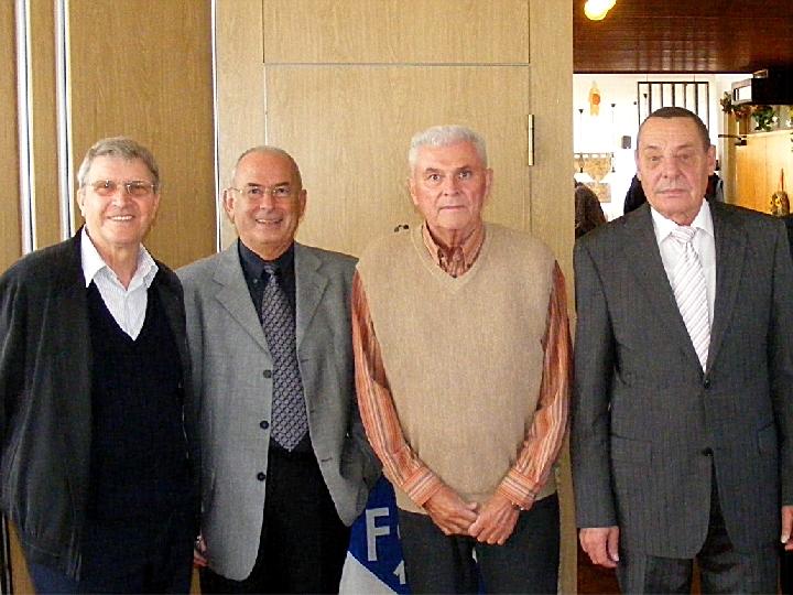 Gleich vier Vereinsmitglieder konnte Rainer Interwies für 50-jährige Mitgliedschaft beim 1. FC Eislingen zu Ehrenmitgliedern ernennen. Es sind dies (v.l.) Manfred Rapp, Manfred Holzwarth, Günther Grünenwald und Günter Bertler,. Damit sind es nunmehr 52 Ehren-mitglieder die 50 Jahre und länger dem Verein die Treue halten.