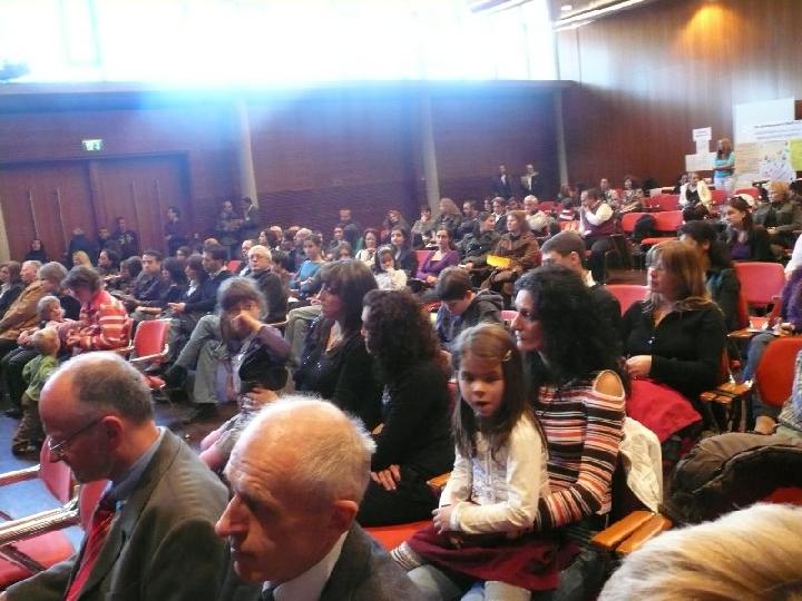 Die Eislinger Stadthalle voll junger Menschen, italienische Familien mit ihren Kindern - Bernd Letzel, Integrationsbeauftragter der Stadt, konnte sehr zufrieden sein. Denn viele waren gekommen, um die Angebote in Eislingen kennenzulernen, vom Kindergarten über das Schulsystem bis hin zu den besonderen Förderprogrammen. Eingeladen hatten das Italienische Generalkonsulat in Stuttgart und die Stadt Eislingen. Der italienische Generalkonsul, Dr Faiti Salvatore lobte, wie auch schon Bürgermeister Günther Frank, das in Eislingen schon erreichte und warb auf deutsch und italienisch für die Annahme der vielen Angebote, insbesondere für den frühen Kindergartenbesuch. Frau Zimmermann vom Kindergarten 'Piccolino' (Che bella nome!)stellte die Problematik von Migrantenfamilien vor, Schulrat Stang das baden-württembergische Schulsystem und Dottore Mauro Bortelletto, der Zuständige für den italienischen Unterricht insbesondere die Hilfen für die italienischen Migrantenkinder bei Schwierigkeiten. Bunt und lebendig eingerahmt wurde die Veranstaltung durch Aufführungen der Schillerschule auf deutsch und italienisch mit 'Swimmy', den Kindern der muttersprachlichen Kurse und einer präzise präsentierten 'Streetdance'-Aufführung des KSG. Der italienische Beirat sorgte für köstliches Essen, das man sich allerdings erst durch eine ausführliche Beratung auf dem Info-Parcour ('Offerta delle opportunità') verdienen musste. Danach allerdings hieß es: Buon appetito, tutti.