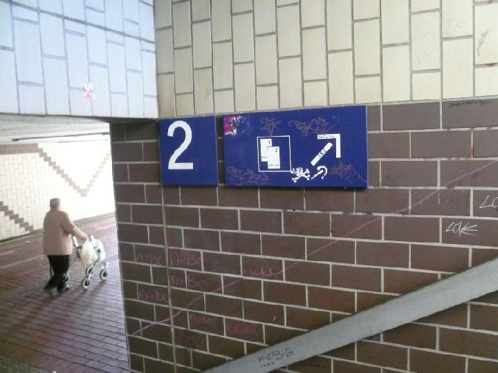Ist sie es nun oder ist sie es nicht? Erstaunt registriert der Bahnfahrer, dass offensichtlich die Scheibe im Zugangsbereich zu Gleis 2 und 3 wieder eingesetzt ist. Man sieht sie kaum, weil die anderen Scheiben so verdreckt sind, dass man die neue Scheibe eher als Loch wahrnimmt. Jetzt fehlt noch eine regelmäßige Grundreinigung des 'versifften' Eingangsbereichs in die Stadt von der Bahn her. Wie hieß es doch am Ende der DDR: ... in die Produktion. Also: Mehdorn in die Bahnhofsreinigung. Ein Tag vor Ort würde dem Herrn der Bonuszahlungen sicher gut tun.