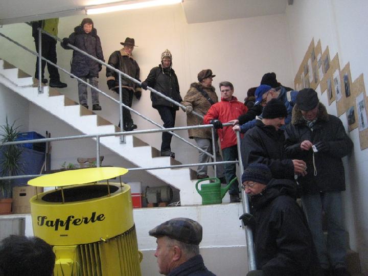 Herr Mühlhäuser führte aus, daß der rentable Betrieb dieser Anlage nur gewährleist sei, wenn die Turbine 24 Stunden am Tag im Betrieb ist. Naheliegend ist, daß solche rund um die Uhr tätigen Maschinen schwäbische Namen bekommen. So ist die Turbine als Schafferle getauft und der Generator heisst Tapferle.
