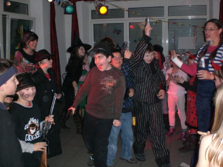 Es tummelten sich Cowboys, Feen, Hexen und viele Piraten auf der Tanzfläche. Zu Liedern wie „das rote Pferd“ oder „Komm hol’ das Lasso raus“ wurde ausgiebig getanzt. Ein Highlight war der Limbo-Tanz, bei welchem man unter einem Besenstab hindurchtanzen musste. Natürlich durfte auch die Polonaise nicht fehlen. Außerdem gab es viele Spiele, wie Mumienwickeln, die Reise nach Jerusalem und Mohrenkopfwettessen, welche allen Kindern sehr viel Spaß gemacht haben. Durchgeführt wurde die Party vom Kinder- und Jugendbüro in Kooperation mit dem Jugendtreffleiter des NONSTOPs. Ein besonderer Dank gilt der Party-Planer-AG der Silcherschule, welche unter Leitung von Frau Kothe das Jugendhaus wirklich ganz toll geschmückt hatte und Jutta Speiser, die schon mehrere Aktionen des Kinder- und Jugendbüros tatkräftig unterstützt hat.