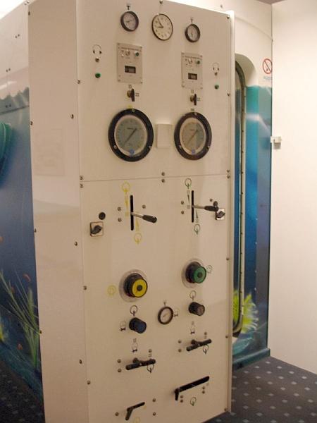 In der Druckkammer wird dazu ein Tauchgang auf 50 m Tiefe simuliert. Nach einer einstündigen Einführung durch einen Tauchmediziner, bestiegen die Taucher, die mit 14 Plätzen ausgestattete Druckkammer. Der Druck wurde schrittweise erhöht und das Befinden der Teilnehmer abgefragt. Eine Videokamera hatte die Taucher permanent im Blick. Auf der Maximaltiefe von 50 m konnten die Taucher Konzentrationstests durchführen. An bei Normaldruck aufgeblasenen Luftballons, sah man die geänderten Druckverhältnisse, da diese stark zusammenschrumpften. „Unten“ aufgeblasene Luftballons platzten natürlich beim Aufstieg.