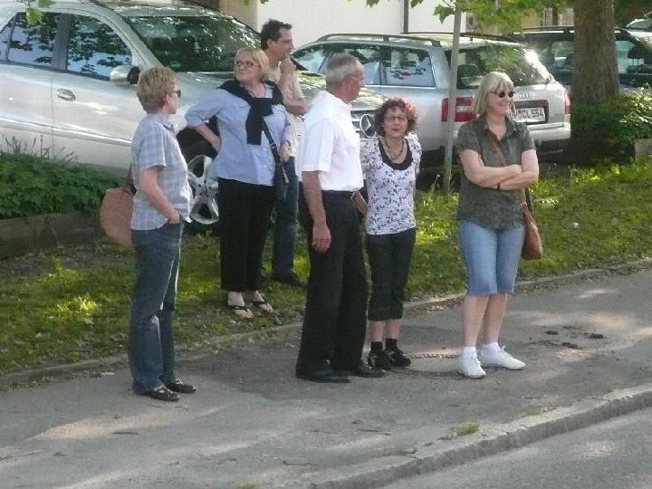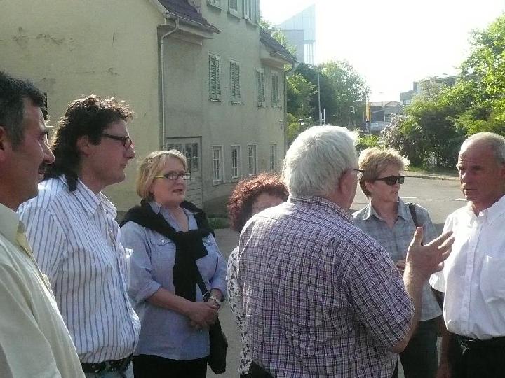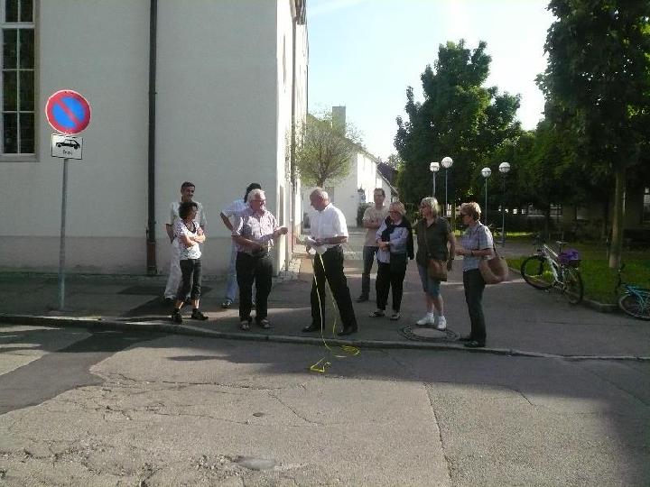 Andreas Grupp machte sich dafür stark, die alte Wegeverbindung zwischen Volksbank und Lutherkirche wieder aufzunehmen. An dieser Stelle sollte der Blick auf die Lutherkirche ebenfalls erhalten bleiben. Die Besichtigungsrunde konnte sich anschließend über den endgültigen Ausbau der Weberstraße informieren und im Bereich des Johann-Jakob-Haid-Wegs von der Durchgrünung des Viertels und dem ausgedehnten Weglessystems mit einem gut besuchten Spielplatz überzeugen.