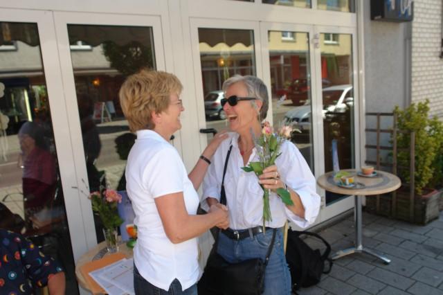 ..ertönte bei der wöchentlichen Redaktionskonferenz als Kanon vor der Eisdiele. Die erst wiedergewählte Stadträtin Angela Schirling und die bekannte Eislinger Schriftstellerin Tina Stroheker feiern beide am 13.Juni Geburtstagsfest. Angela Schirling und Tina Stroheker |