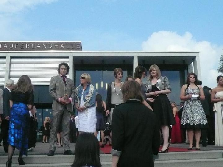 Schulleiter Michael von Hagen unterstrich in seiner Rede nochmals die Sorgen, die der Jahrgang in den letzten Jahre gemacht habe, dann jedoch am Schluss seien von den Schülerinnen und Schülern große Anstrengungen gemacht worden, doch mit einem besseren Eindruck die Schule zu verlassen. Schüler, Eltern und Lehrer feierten den Abschied gemeinsam in der mit Spielkarten mit Lehrerköpfen bestückten Stauferlandhalle.
