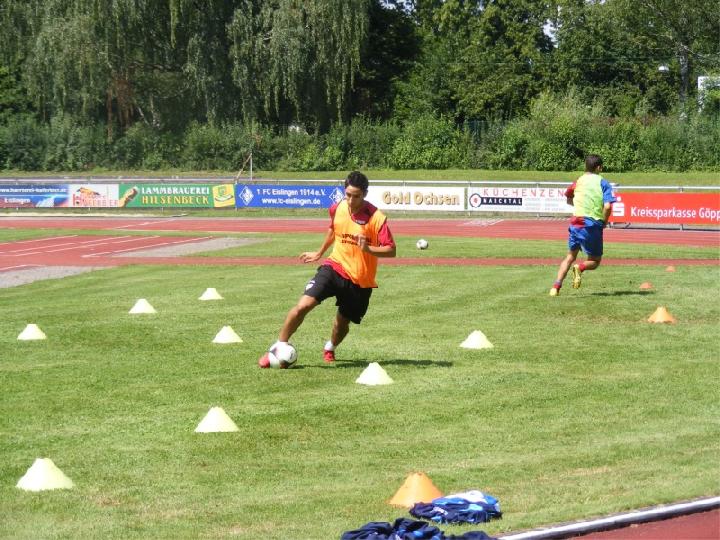 In der Halbzeitpause erwies sich Eislingens Vorstandschaft als wesentlich treffsicherer beim Neunmeterschießen als die AH und Seniorenmannschaft, während im Eislinger Eichenbachstadion schon kräftig der Schweiß floss. Rund 50 Spieler aus der I. Mannschaft, der U-23 und der A-Juniorenmannschaft waren zum Trainingsbeginn am Start und mussten Laufeinheiten sowie Sprintübungen absolvieren.