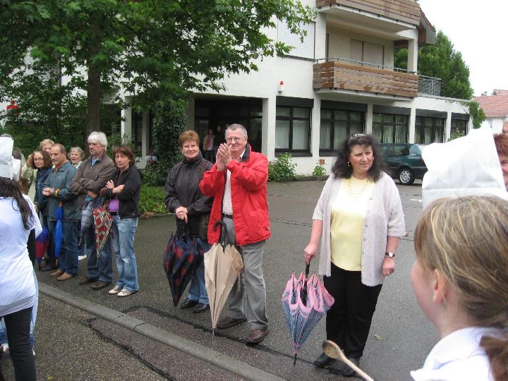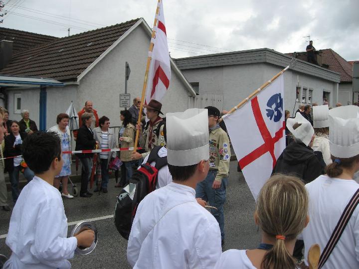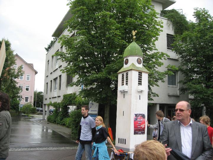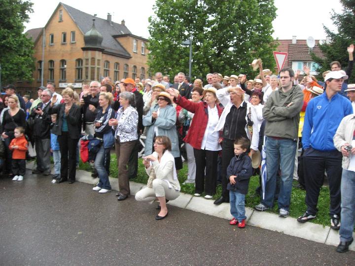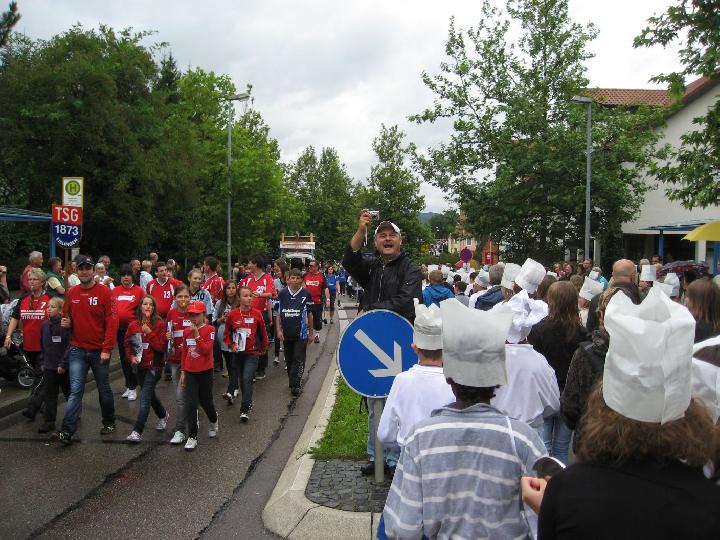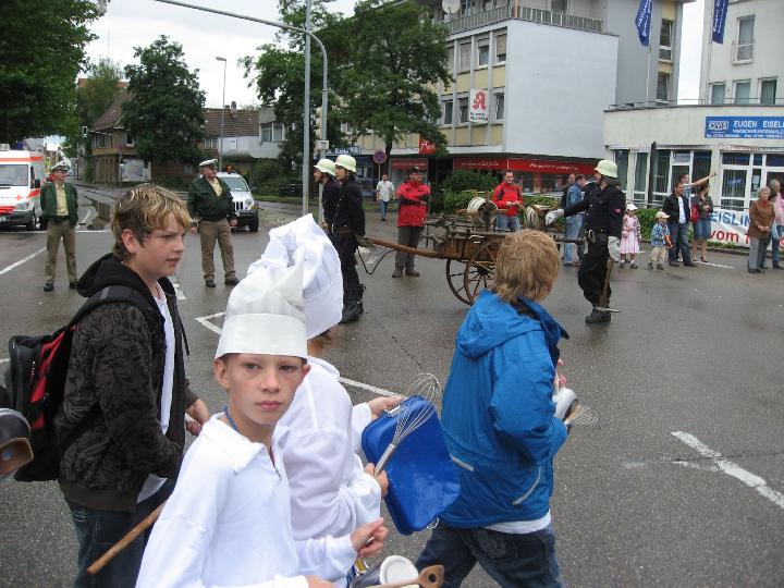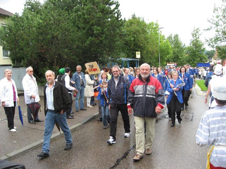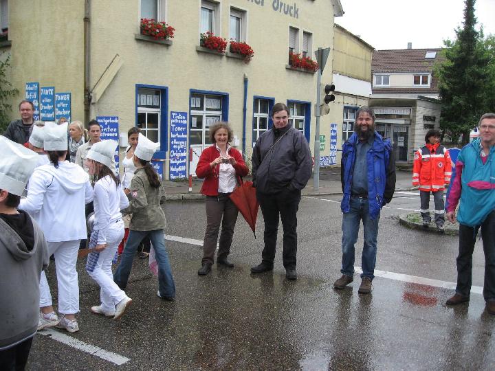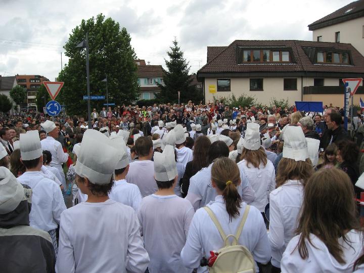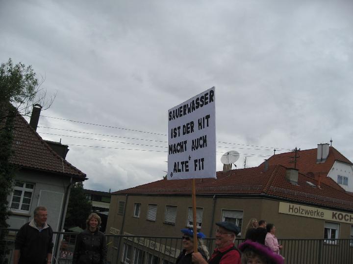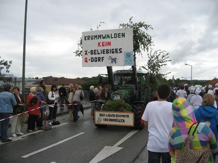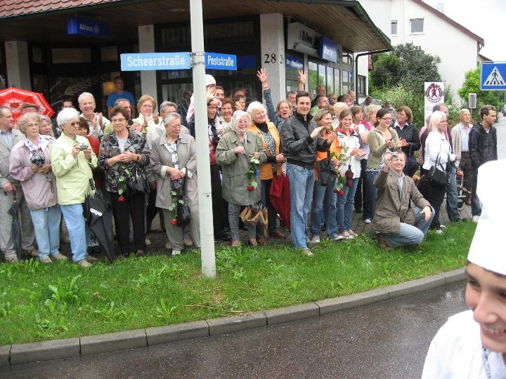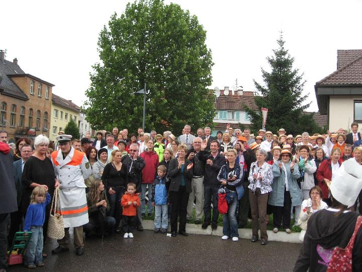 Eine viel gelobte Neuerung hatte sich das Team um Alois Eichhorn - für ihn und Bürgermeister Günter Frank war es der 'Schwanengesang' in ihrer Funktion - für diesen Festzug einfallen lassen: Es gab einen Wendepunkt beim Büchelerkreisel ('Friedhofskreisel') Dadurch gab es einen Gegenzug; somit konnten die Teilnehmer erstmals selbst etwas vom Festzug sehen und der Südteil der Stadt wurde besser 'bedient'. Zahlreiche begeisterte Südler dankten durch überwältigenden Besuch und begeisterten Beifall für diese Idee. Am Oyonnax-Kreisel |