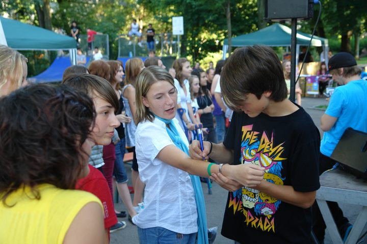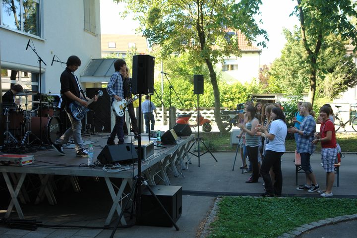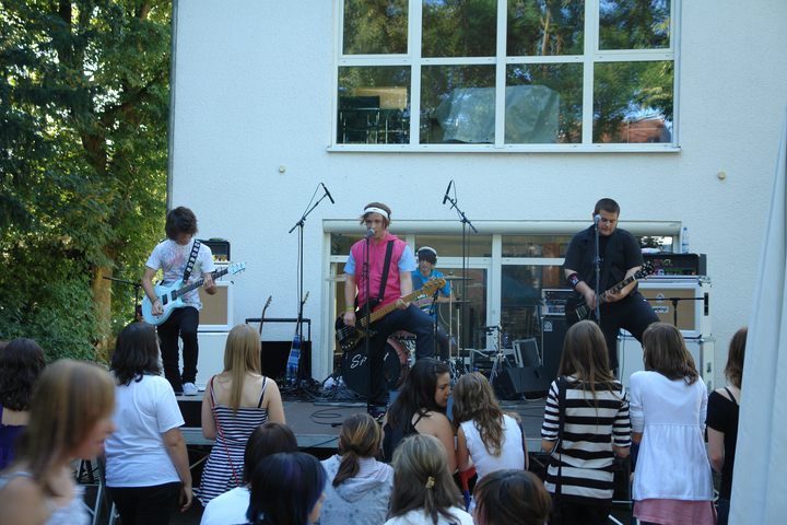 Bei so einem Wetter und so vielen tollen Acts hätten sicherlich die Veranstalter, ein Team aus SMV, Schulsozialarbeit, Mobiler Jugendarbeit, Jugendhaus Non Stop und Kinder- und Jugendbüro, noch mehr Besucher verdient. Aber die da waren und nicht in dem Ruf der Göppinger Werfthalle gefolgt waren, kamen voll auf ihre Kosten. Split auf der Bühne beim Nonstop |