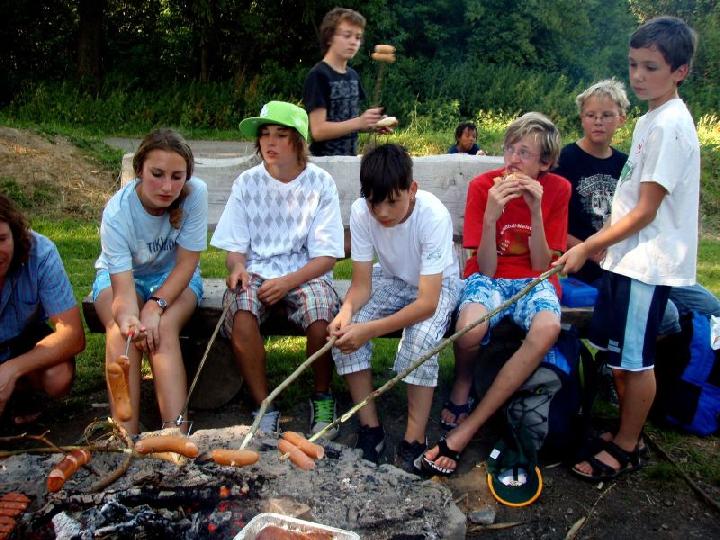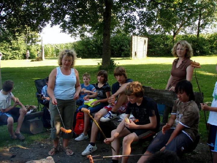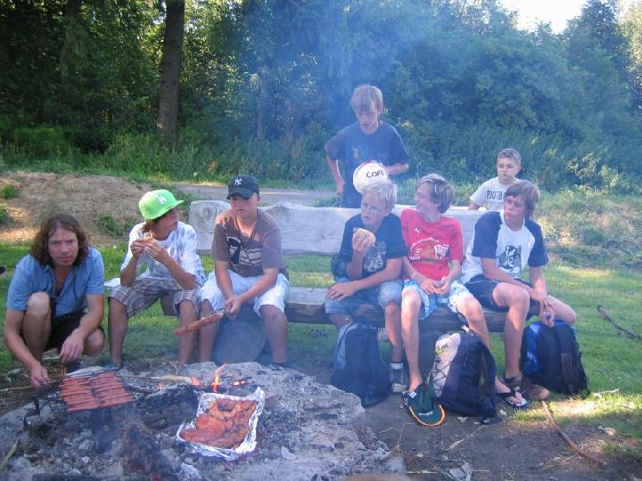 Der rettende Zielhafen war bald in Sicht und die Landmannschaft erwartete schon sehnsüchtig die Wassersportler. Gemeinsam wurden die Hänger beladen und es ging zum Spiel-Grillplatz nach Böhmenkirch. Dort wurde erst einmal ein zünftiges Lagerfeuer gemacht und anschließend gab es Grillwurst. Die Kinder tobten sich noch an den Spielgeräten aus und spielten Fußball, als ob die Kanufahrt nicht anstrengend genug gewesen wäre.