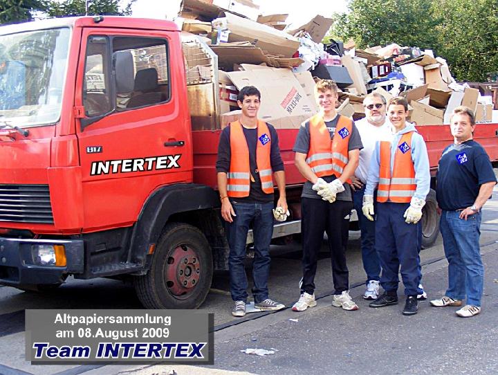 Laufarbeit der etwas anderen Art, nämlich 'ohne Ball', war am vergangenen Samstag angesagt, als nahezu 50 Teilnehmer aus den Teams der A- B- und C-Junioren unterstützt von Trainern, Betreuern und Vorstandsmitgliedern den Rohstoff Altpapier dem Verwerter zuführten. Mit 12 Sammelfahrzeugen, die dem FCE nahestehende Unternehmen zur Verfügug stellten, ging es bei drückender Hitze an die Arbeit. Nach gut 7 Stunden, nur unterbrochen von zwingend notwendigen Trinkpausen und einer kurzen Mittagsrast, stand nach insgesamt 65 Fuhren das Endergebnis mit nahezu 70 Tonnen fest. Die jugendlichen FC-Kicker danken der Eislinger Bevölkerung für die gewährte Unterstützung und freuen sich schon heute auf die im September beginnende neue Punktrunde, die in neuem Outfit gestartet wird. Denn erstmals in der Vereingeschichte treten nicht nur alle Jugendlichen, sondern auch die aktiven Mannschaften einheitlich gekleidet an. Der Erlös aus der Altpapiersammlumg trägt dazu bei, dass die Ausrüstungspakete der Junioren zu einem erheblich günstigeren Preis erworben werden können. Team INTERTEX 1 mit 2,8 to Altpapier auf der Fahrzeugwaage |