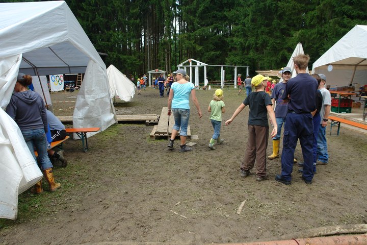 Und auch dieses Jahr hatten die Aktiven dieses Abschnitts das Wetterpech wieder einmal gepachtet. Schon am Vorbereitungswochenende ergoß sich das Samstagsunwetter als Sturzbach durch die Essenszelte, wie uns der WaWuWo2-Verantwortliche Andreas Jirouschek berichtete.