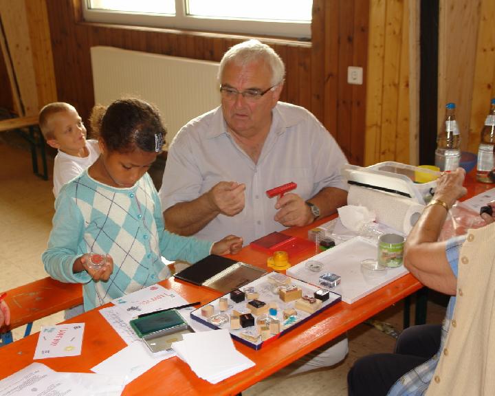 Eine schöne Tradition sind Besuche aus Eislingen während der Ferienwoche auf der Nordalb. Der Eislinger AWO-Vorsitzende Harald Kraus überbrachte bei seinem Besuch als Gastgeschenk eine neue Spielesammlung. Der SPD-Fraktionsvorsitzende Peter Ritz hat in seiner riesigen Stempelsammlung gesucht und ist passend zum diesjährigen Motto –wunderbare Natur auf der Nordalb- fündig geworden.