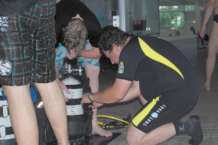 Angefangen vom selbständigen zusammenbauen und prüfen der Ausrüstung über verschiedenste Übungen und Techniken im Umgang mit dem Tauchgerät bis hin zu Praxisübungen zur Tauchsicherheit und Rettungsmaßnahmen wurden im Laufe der Ausbildungsabende im Hallenbad vermittelt. Die einzelnen vorgeschriebenen Übungs- und Ausbildungsteile wurden je nach Gelingen in den dafür vorgesehenen Unterlagen vermerkt und abgezeichnet.