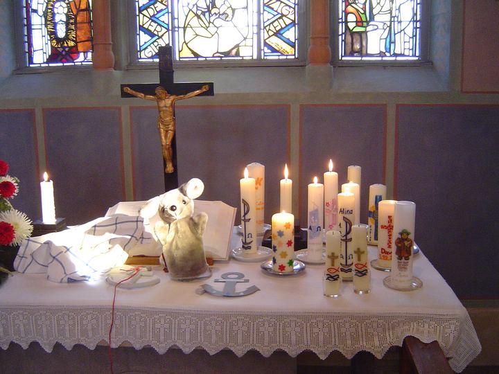 Viktor, die Kirchenmaus, lud dieses Mal zum Erlebnisgottesdienst mit Tauferinnerung ein. Hierzu wurden besonders die Kinder angesprochen, die in den letzten drei Jahren getauft wurden.