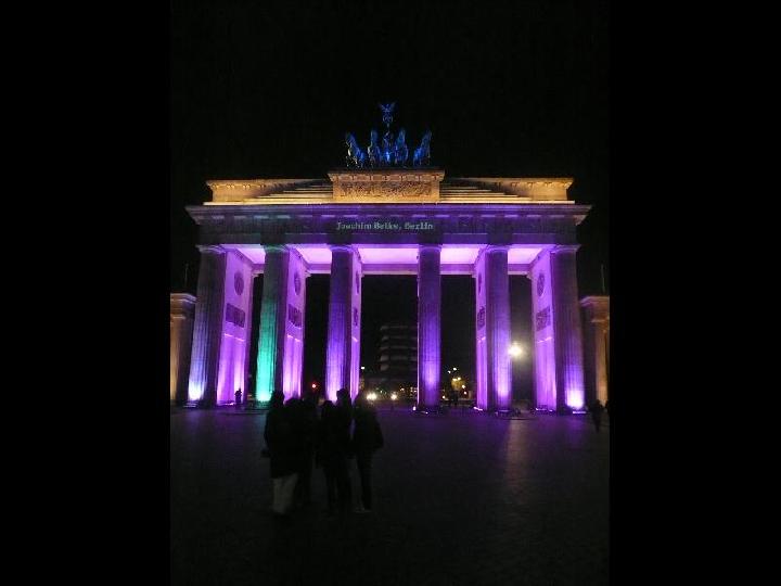 Ganz so interessant und spannend hatten sich die Schülerinnen und Schüler des EKG Berlin nicht vorgestellt: Vom ersten Rundgang vom Hauptbahnhof über das Kanzleramt und den Reichstag zum Brandenburger Tor und dem Potsdamer Platz - ein erster Eindruck mit einem Lichtfestival, dem Festival auf Lights, war überwältigend. Ein Besuch im Reichstag, im Kanzleramt, im Paul-Löbe-Haus zeigten, wie die Berliner Republik funktioniert, der Blick von der Kuppel bei strahlendem Sonnenschein beeindruckend. Die einzelnen Kurse hatten verschiedene Ziele, allen gemeinsam war die intensive Beschäftigung mit Geschichte und Gegenwart: Das jüdische Museum, das Deutsche Historische Museum, das Olympiastadion, Topografie des Terrors (Gestapo), Holocaust-Mahnmal, Mahnmal für die Schwulen und Lesben, Gedenkstätte Hohenschönhausen mit jeweils Zeitzeugen, die dort unter scheußlichen Bedingungen einsaßen, die Stasizentrale Normannenstraße, das DDR-Museum, der Berliner Dom ... Berlin hat so vielfältige historische Orte und aktuelle Stätten, Kunst und Kultur, es war nicht alles in vier Tagen zu schaffen. Theaterbesuch beim Berliner Ensemble, die Dreigroschenoper und Biedermann und die Brandstifter, Museen, Kunstgalerien...Kiezbegehung in Charlottenburg, Besuch in der taz-Berlinredaktion... Berlin hat in vier Tagen gegeben, was Schule nicht in einem halben Jahr vermag, war Motivation für eine intensive Abivorbereitung. Das Lichterfestspiel am Brandenburger Tor |