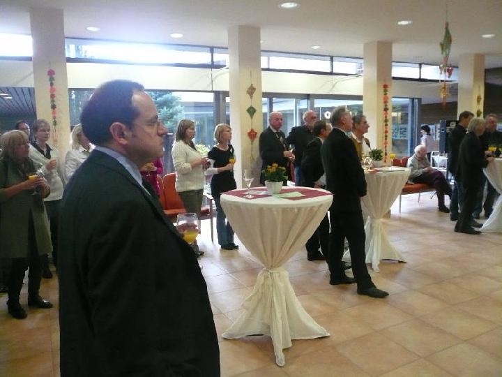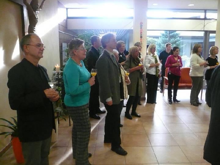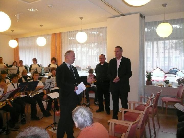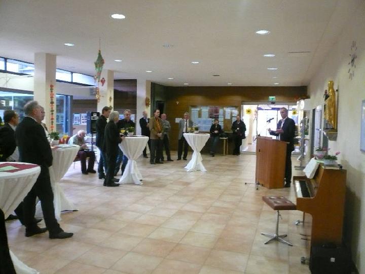 Vergangenen Freitag war die Einweihung der neuen Tagespflegegeräume in St Elisabeth in der Königstraße - ein Projekt, an dem auch die Stadt sich mit 15% beteiligt hat. Herr Schöck, BM Günther Frank, Pfarrer Dehlinger und Stadtpfarrer Schmid würdigten und segneten den neuen Bau. Ein gutes Omen. Beim anschließenden Tag der offenen Tür war das Interesse groß; begeisternde Unterhaltung durch die Big Band des EKG unter Leitung von Dieter Läßle. Der neue Vorsitzende des Fördervereins Altenhilfe, der 1.Beigeordnete der Stadt, Herbert Fitterling dankte für die erbrachten Leistungen. Munter geht es zu nach der Besichtigung |