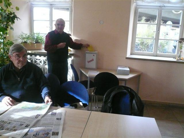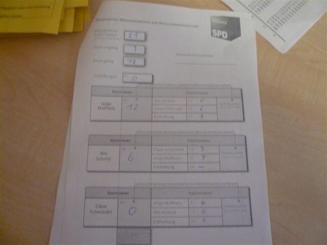 Um 16 Uhr am Samstag konnte der SPD-Ortsvereinsvorsitzende Hartmut Komm telefonisch nach Stuttgart das Eislinger Ergebnis durchgeben. Im Gegensatz zum Landesdurchschnitt votierten die Eislinger Sozialdemokraten in der Urnenwahl mit einer Zweidrittelmehrheit für Hilde Mattheis. Hier sind nur die Stimmen berücksichtigt, die direkt im Eislinger Schloß ihre Stimmen abgegeben hatten. Die Briefwählerinnen und Briefwähler sind direkt im Landesverband in Stuttgart ausgezählt worden. Hartmut Komm informiert Stuttgart |