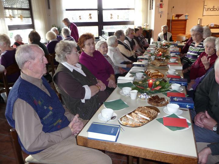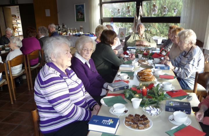 Dann war Kaffee- und Gesprächszeit angesagt: Fleißige Hände hatten mit Stollen, Apfel- und Schokoladenbrot für das passende Adventsgebäck gesorgt, das allen sehr gut mundete. Bei angeregter Unterhaltung fühlten sich die Gäste sichtlich wohl.