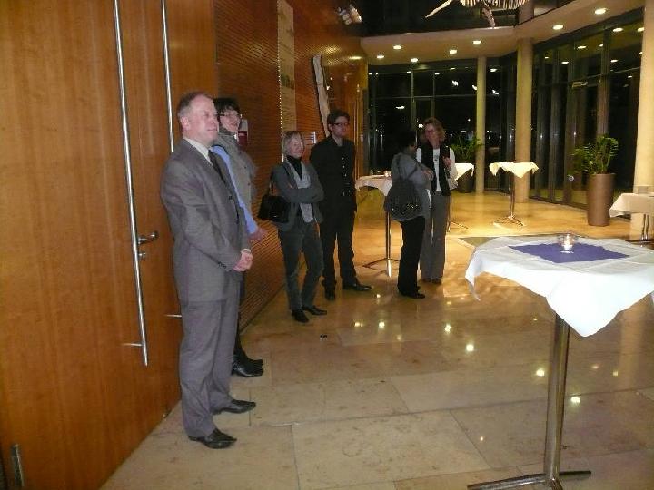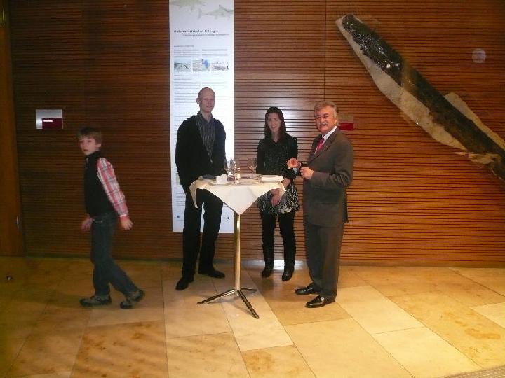 Die beiden Eislinger Topathlet(inn)en,Maximilian Kindler und Melis Ercetin, wurden von Bürgermeister Günther Frank im Namen der Stadt für ihre herausragende Leistung bei der Europameisterschaft der Junioren im Säbel 2009 mit einem Empfang und einem kleinen Geschenk geehrt. Beide seien für ihre Altersgenossen ein Vorbild, was man in der heutigen Zeit nicht hoch genug schätzen könne. In kleiner Runde mit den Familien Kindler und Ercetin, Gemeinderatsvertretern und den TSG-Spitzen wurde u.a. auch die Bedeutung des Sports für die persönliche Entwicklung der Athleten angesprochen. Das Vorbild Dormagen mit einem Internat wurde als sehr erfolgreiches Modell angesprochen; mal sehen, ob sich auch in Eislingen so etwas machen ließe. Günther Frank ehrt Melis Ercetin, daneben Maximilian Kindler |