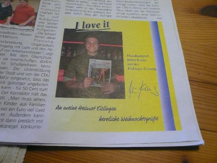 Unser Handball-Held aus Eislingen, Mimi Kraus scheint noch nichts von der einzig echten Eislinger Plattform gehört zu haben .... Mimi Kraus wünscht Frohe Weihnachten - in der EZ |