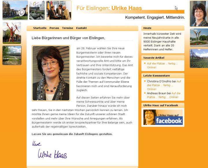 Ulrike Haas jetzt auch online Mit www.ulrike-haas.de im Bürgermeisterwahlkampf 05.1.2010 - Hans-Ulrich Weidmann