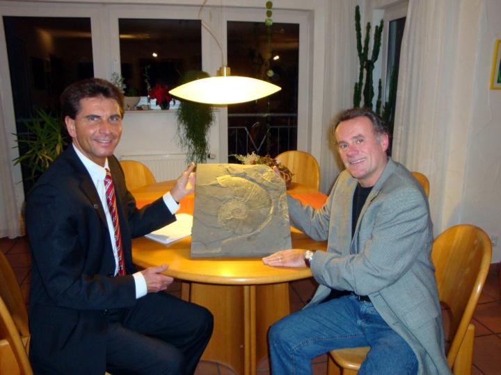 Als fachkundig erwies sich Heininger, weil er damals schon die Ausstellung der Exponate bei einer Führung in der Stadthalle erleben durfte. Die Diskussion mit dem Fachmann, Herrn Begenat verlief deshalb von Anfang an sehr angeregt. Zumal auch auf dem Sportgelände in Birenbach vor vier Jahren Fossilienfunde entdeckt und von Dr. Rademacher freigelegt wurden.