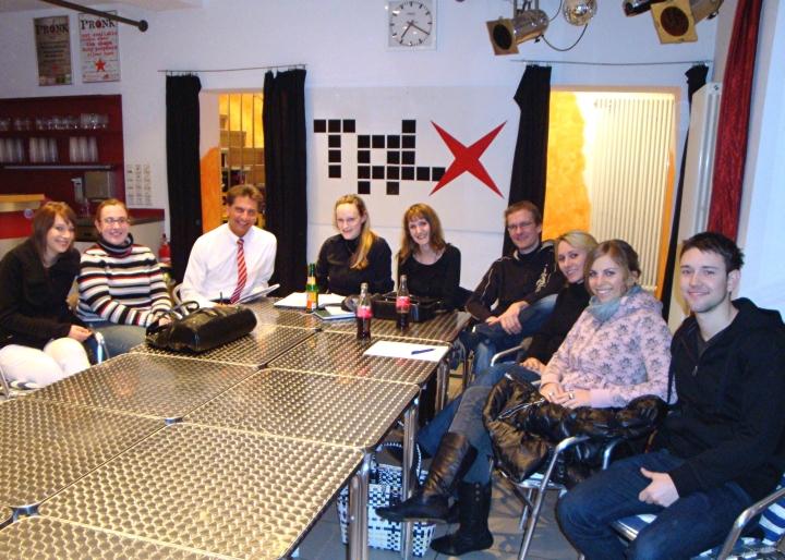 Mit dem verantwortlichen Team an der Spitze die 1. Vorsitzende Inga Kottmann und weiteren verantwortlichen Mitgliedern sowie der Leiterin des Kinder- und Jugendbüros Frau Glück diskutierten das Leitungsteam und der Kandidat angeregt über die Struktur des Vereins und die verteilten Zuständigkeiten zwischen der Stadtverwaltung und dem Verein. „Ich bin beeindruckt von der gut gelungenen Aufteilung, die dem jungen Team von TALX e.V. sehr viel Spielraum, aber auch sehr viel Eigenverantwortung ermöglicht, freute sich Heininger über das sehr kreative Zusammenwirken.
