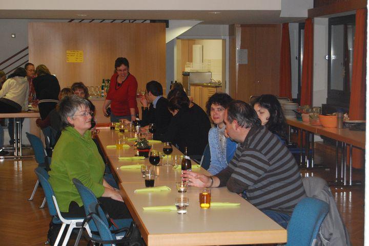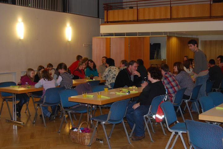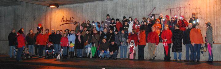 Bis nach Australien sind sie nicht gekommen, aber sie haben Wind und Regen getrotzt und sich in den Weihnachtsferien zu einer Nachtwanderung aufgemacht: die Kinderkirch¬kinder mit Eltern und Kinderkirchhelfer der Lutherkirchengemeinde Eislingen, insgesamt über 70 Personen. Die Kinderkirchkinder bekamen zu Weihnachten von der der Gemeinde eine Taschenlampe geschenkt und das war dann der Anstoß, die Taschenlampen gemein¬sam zu erproben. Zum Abschluss gab es noch Pizza im Luthergemeindehaus. Zum Salat- und Dessertbüffet steuerten die Eltern eine leckere Auswahl bei. Voller Ungeduld wurde von den Kindern die Filmvorführung vom Krippenspiel am Heiligen Abend erwartet. Wochenlang hatten sie geprobt, jetzt konnten sie sich einmal auch selber sehen und hören. |