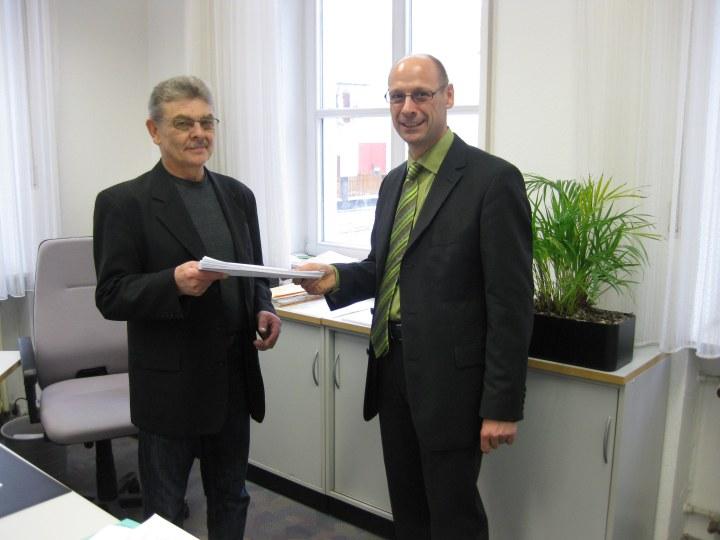 Zur Sicherheit übergab Bernd Rößner dem Eislinger Ordnungsamtsleiter Georg Huttner gleich 60 Unterschriften zur Prüfung. Etliche Unterschriftsvordrucke liegen daheim noch zur Reserve. Einer förmlichen Annahme der Bewerbung Rößners durch den Wahlausschuss steht damit nichts mehr im Wege.