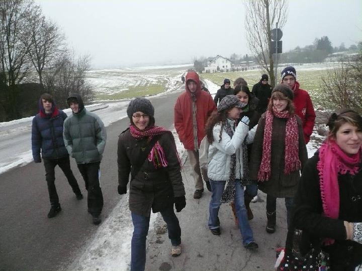 Nur wenige haben die Kuh im Ackerweg 4 in Krummwälden gesehen. Die Schülerinnen und Schüler der Klasse 8 bis 13 hatten jedoch viel Spaß bei der Skitags-Winterwanderung am Donnerstag übers Ösch nach Krummwälden und auf dem Jakobsweg dann über Eschenbäche und die Stempelstelle ins Täle und zurück. Munter wurde parliert und auf den Eisplatten im Wald herumgerutscht. Schule mal anders, auch schön. Die Vorhut |