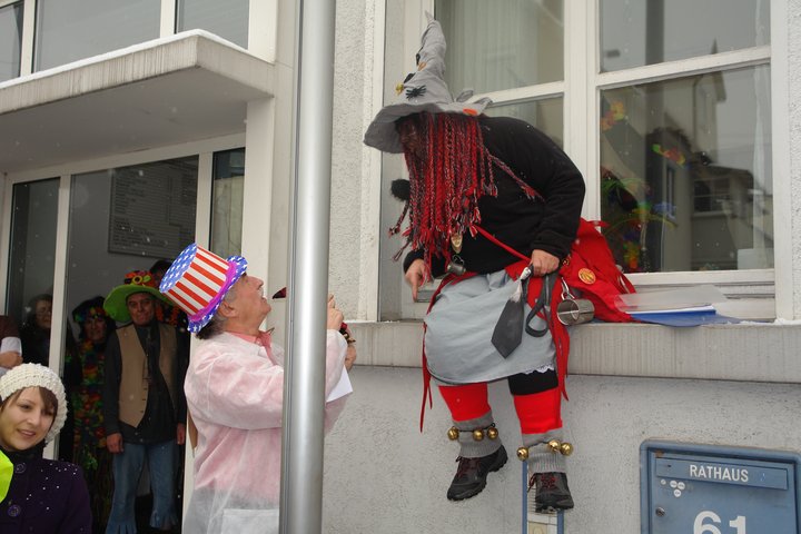 Das Rathaus gehört den Brandstifter-Hexen des ASV - heute abend bei Filstalwelle Bürgermeister Frank gibt Rathaus nicht kampflos auf 11.2.2010 - Hans-Ulrich Weidmann