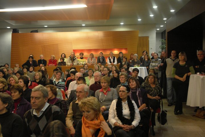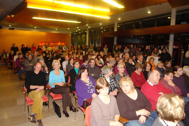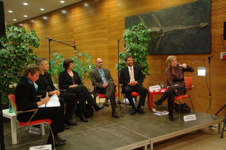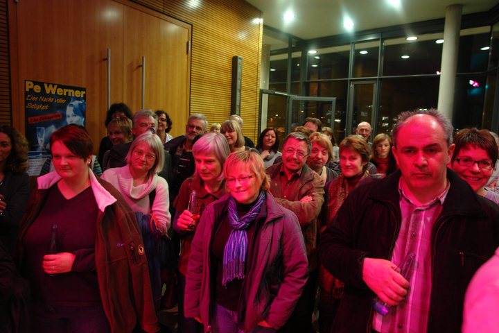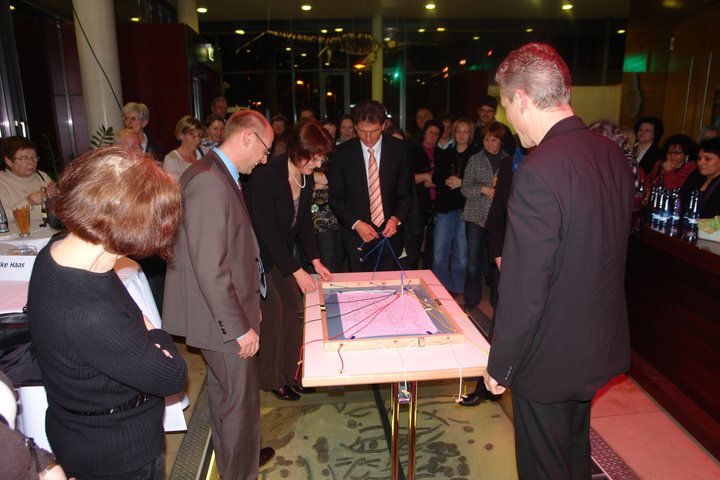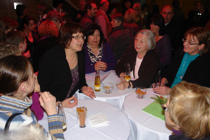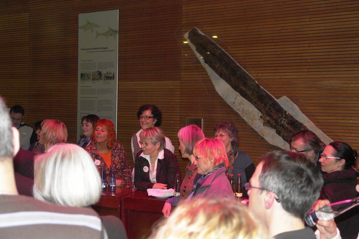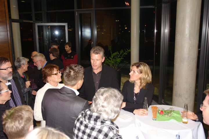 Aber auch die Ehepartner wurden zum Schluß der Talkrunde mit eingebunden. Das Vorbereitungsteam der efa war anscheinend sehr bedacht, auch ihre Vorsitzende nicht in die Pläne für diesen Abend einzuweihen. Bei diesem Punkt, der Fragerunde an die Ehepartner mußte die überraschte Uli Haas erklären, daß ihr Gatte nicht anwesend sei.