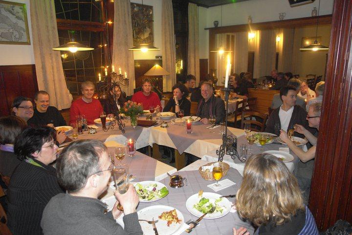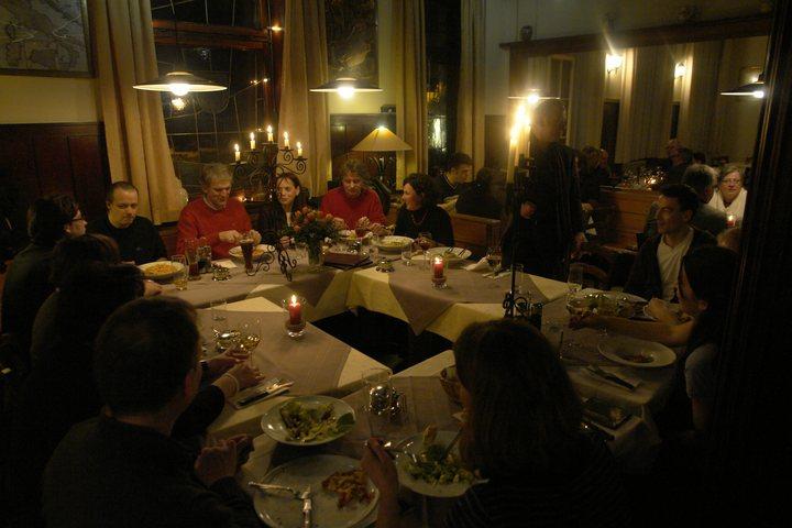 Wer als aufmerksamer Zeitungsleser die Programmankündigungen des neuen Kulturprogramms der Stadthalle gelesen hatte, konnte es sich denken. Nicht irgendwo, sondern im Adler D'Onofrio wird Walter Sittler nach seinem Abend 'Als ich ein kleiner Junge war - Walter Sittler spielt Kästner' zum Essen erwartet. Die Festtafel im Adler |