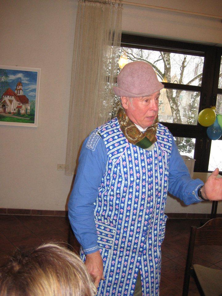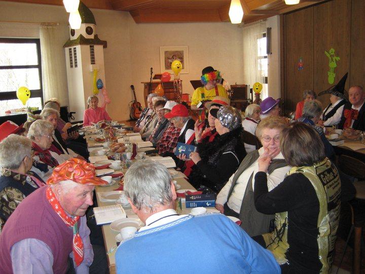 Auch Robert Florin, der den Nachmittag musikalisch umrahmte und auch durch kleine Witzchen die Stimmung aufhellte, legte sich so richtig ins Zeug: Es wurde gesungen und geschunkelt, eine Polonaise mit nahezu der ganzen Narrenschar zog durch das Gemeindehaus, und sogar das Tanzbein konnte geschwungen werden.