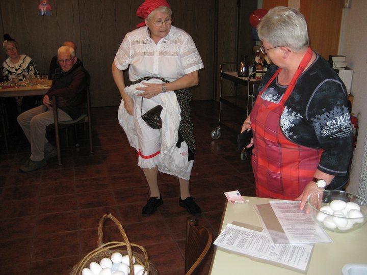Ruth Frodl und Erika Sihler erfreuten mit der heiteren Geschichte über eine Eierfrau von der Alb und zeigten dabei viel schauspielerisches Talent. Dann konnte Ruth Frodl in einem lustigen Gedicht so viele Vorteile des Alters aufzählen, dass der ganze Saal voll Inbrunst skandierte: ‚Ich freu’ mich, dass ich jetzt die (der) Alte bin!’ Dieses Aussage war nun wirklich kaum noch zu übertreffen.
