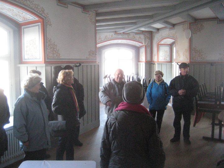 Zahlreiche weitere Geschichten und Anekdoten gab Werner Litz zum Besten und bot damit einen sehr unterhaltsamen Nachmittag, der mit einer Führung durch die im Dachgeschoss des Schlosses aufbereitete Dokumentation über die Geschichte des Kulturdenkmals ihren Abschluss fand. Die Winterwanderung des SPD-Ortsvereins klang mit einem gemütlichen Beisammensein im „Vogelgarten“ aus.