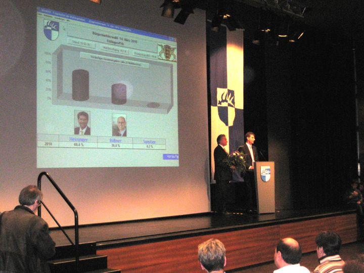 Bernd Rößner gratuliert dem Sieger in seinen Dankesworten und anscheinend sind die Kuchener froh, ihren Bürgermeister nicht verloren zu haben.